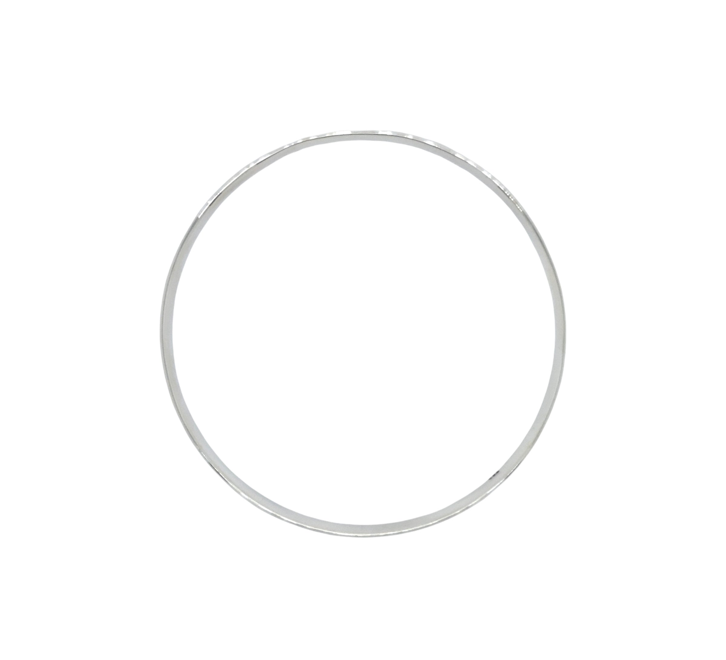 Statement thin solid bangle with flat wire and patterned detail. Available in sizes medium and large.