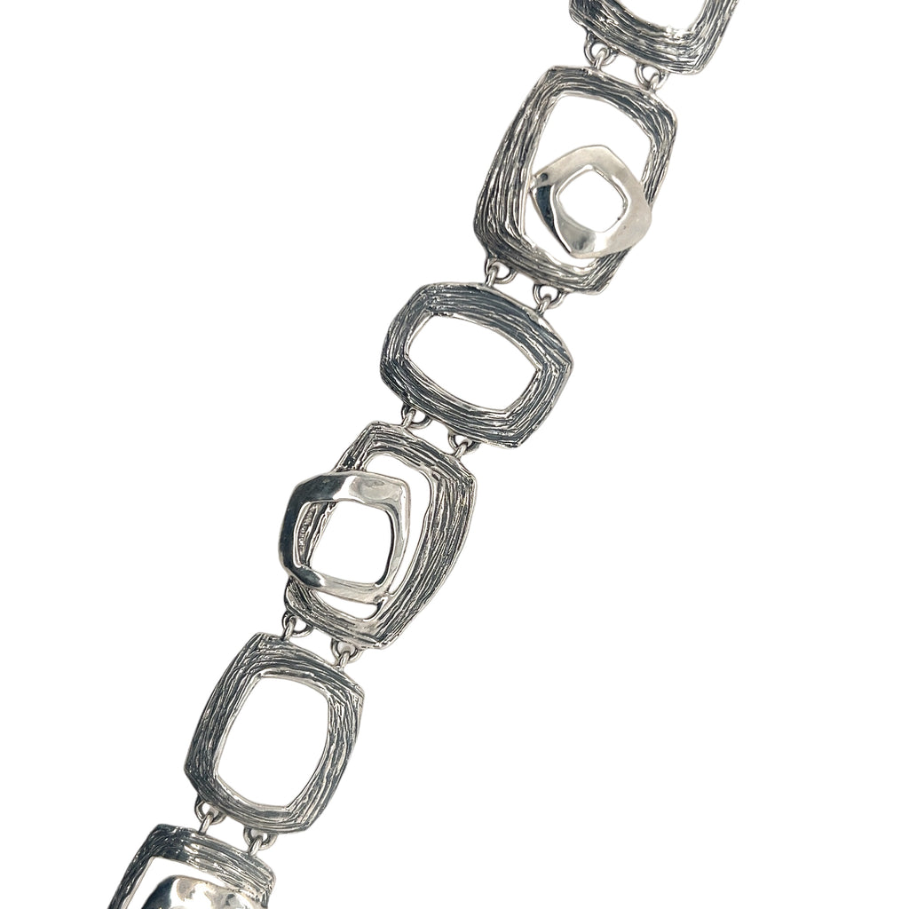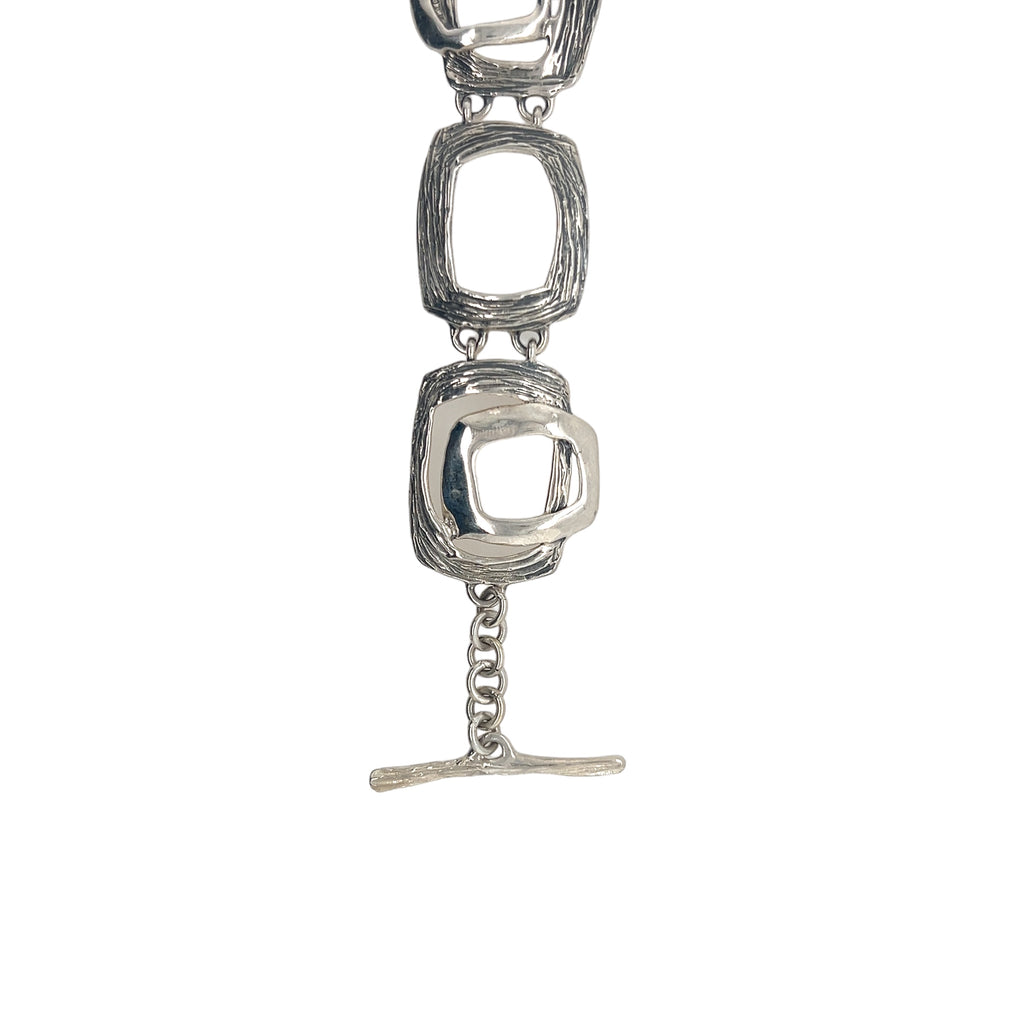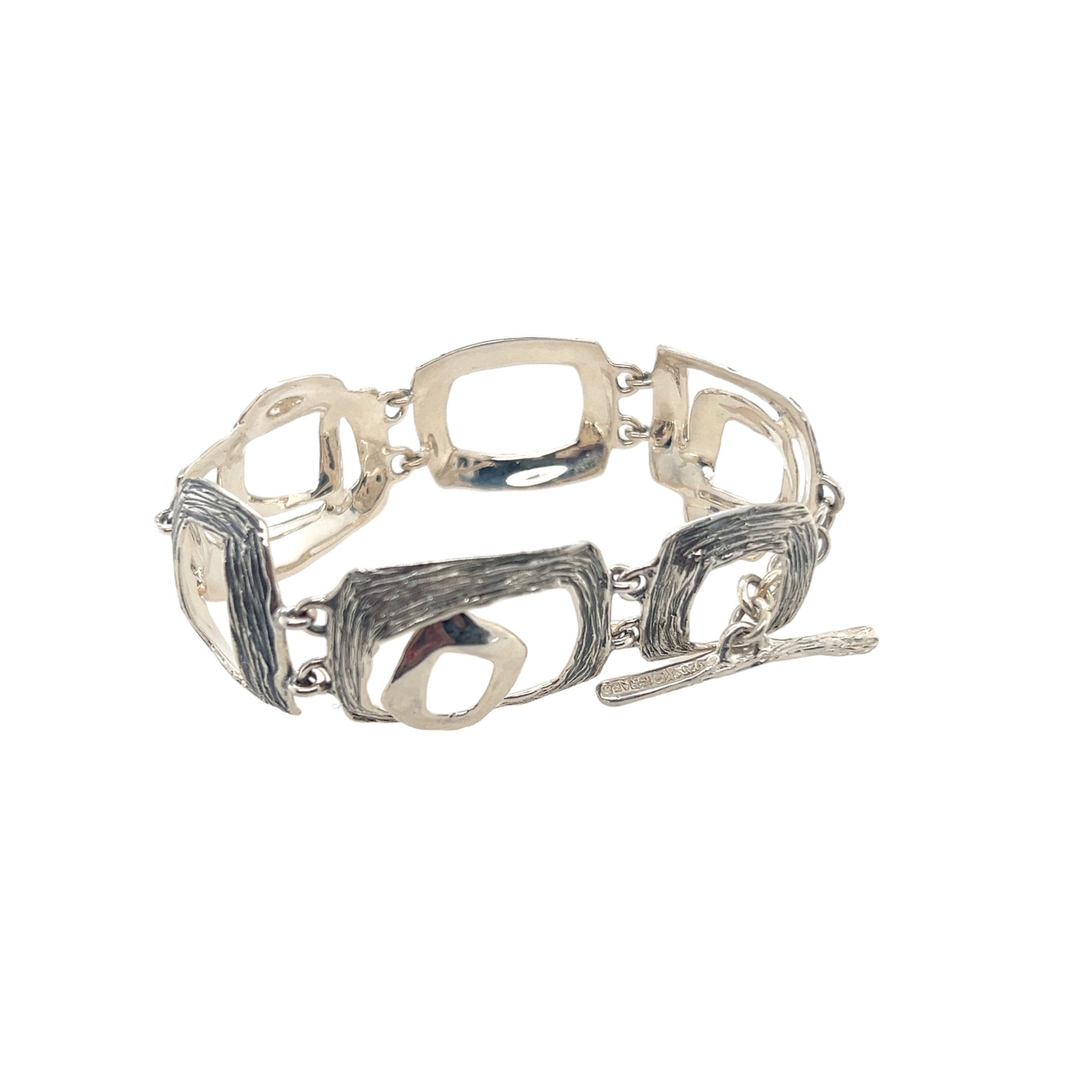 Multi, square polish and tectured elements bracelet with a T-Bar clasp. Part of the Hagit Designs collection.