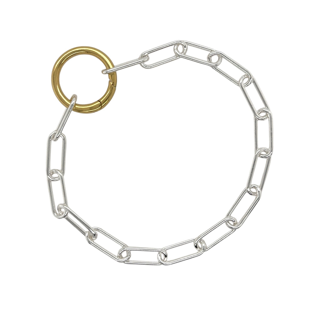 Large paper chain bracelet with large ring clasp in gold plated.