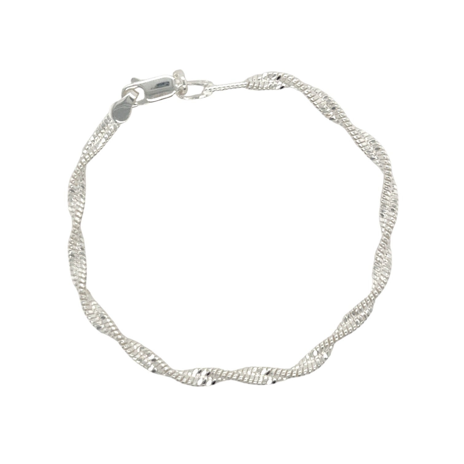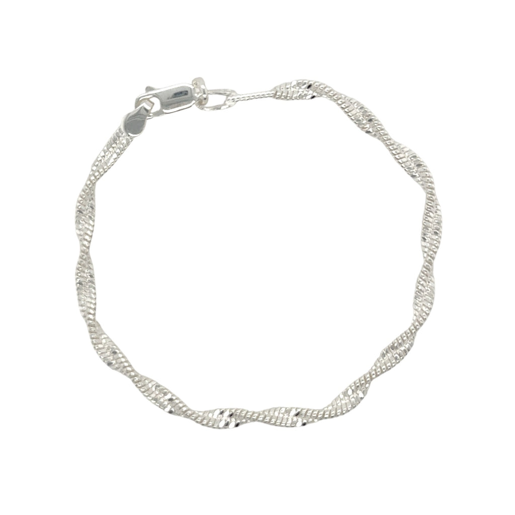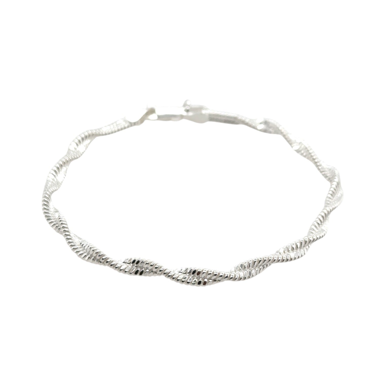 Twisted snake chain silver bracelet with oval lobster clasp.