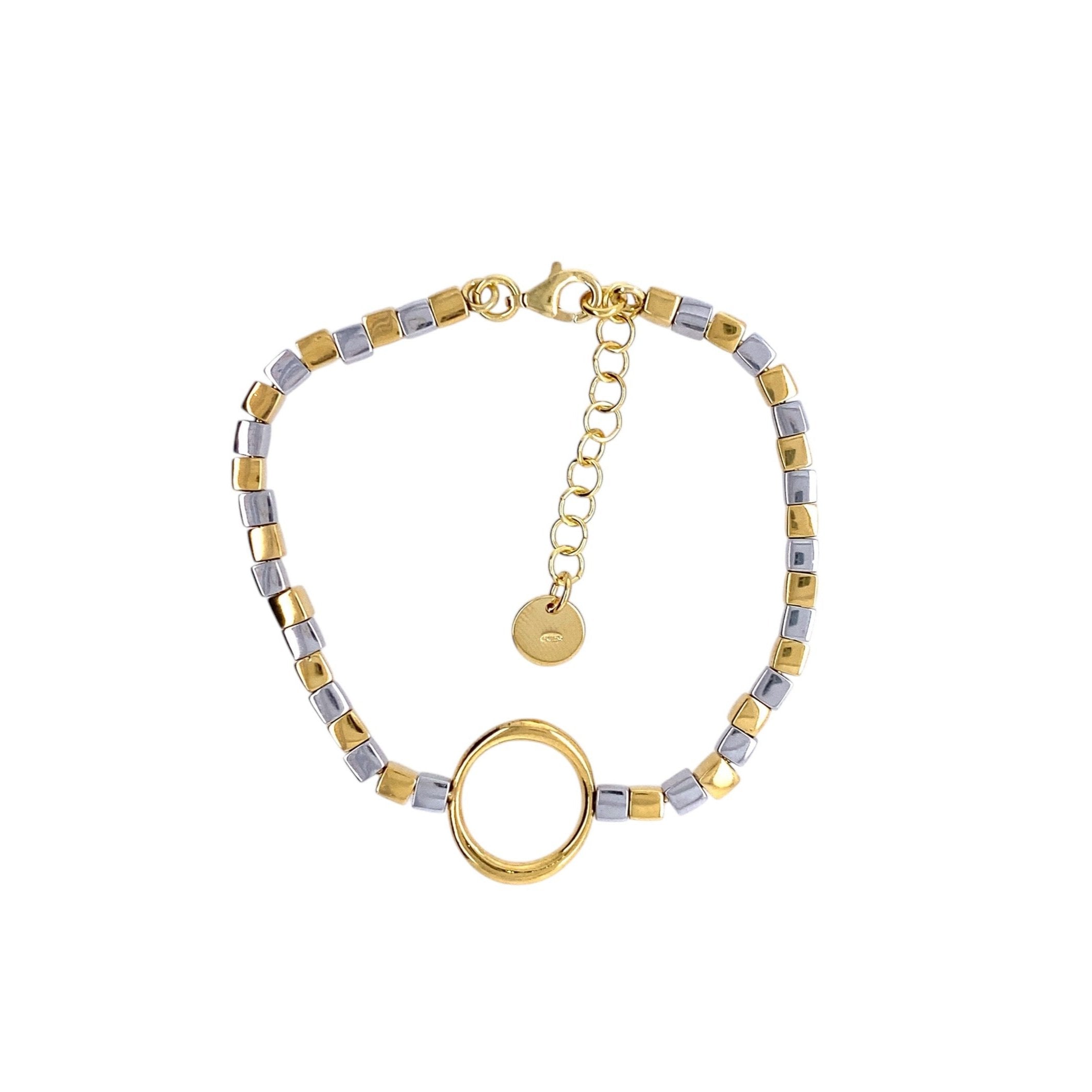 Small two-tone cubes bracelet with ring detail in gold plated.
