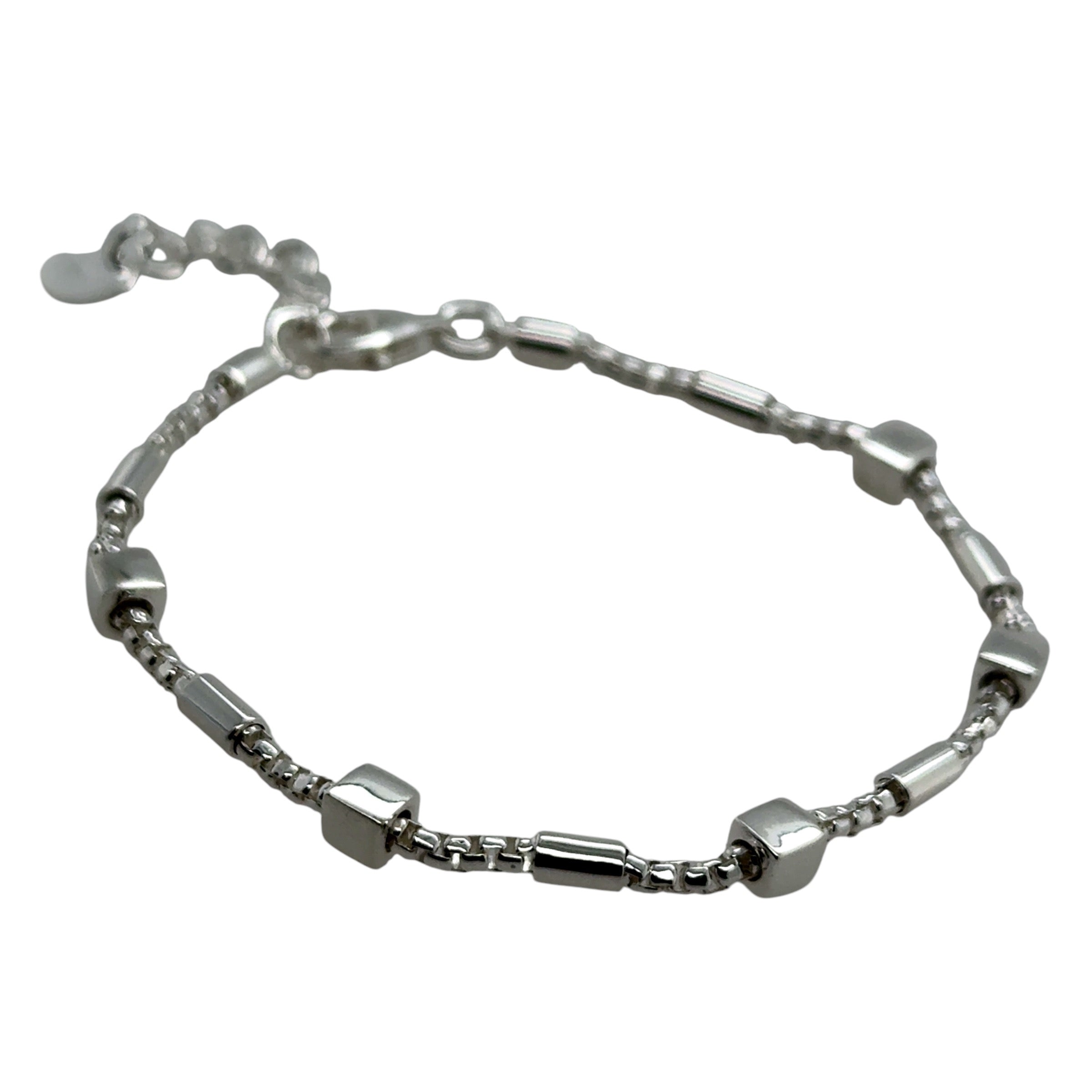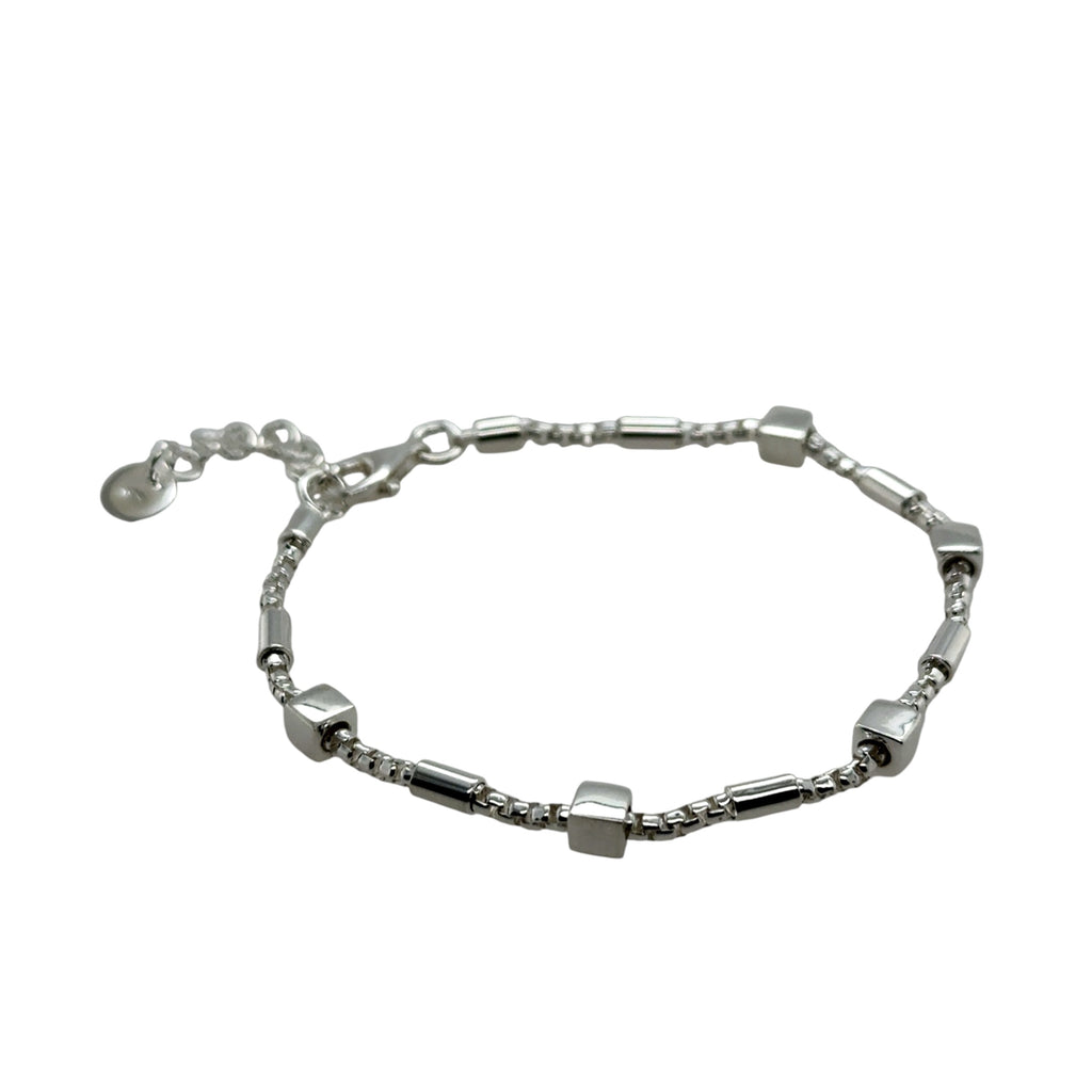 Snake chain bracelet with multi small cubes detail in plain silver.