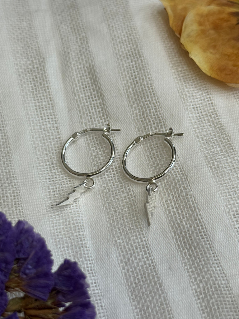 Lightning bolt charm hoops