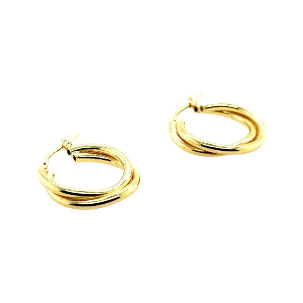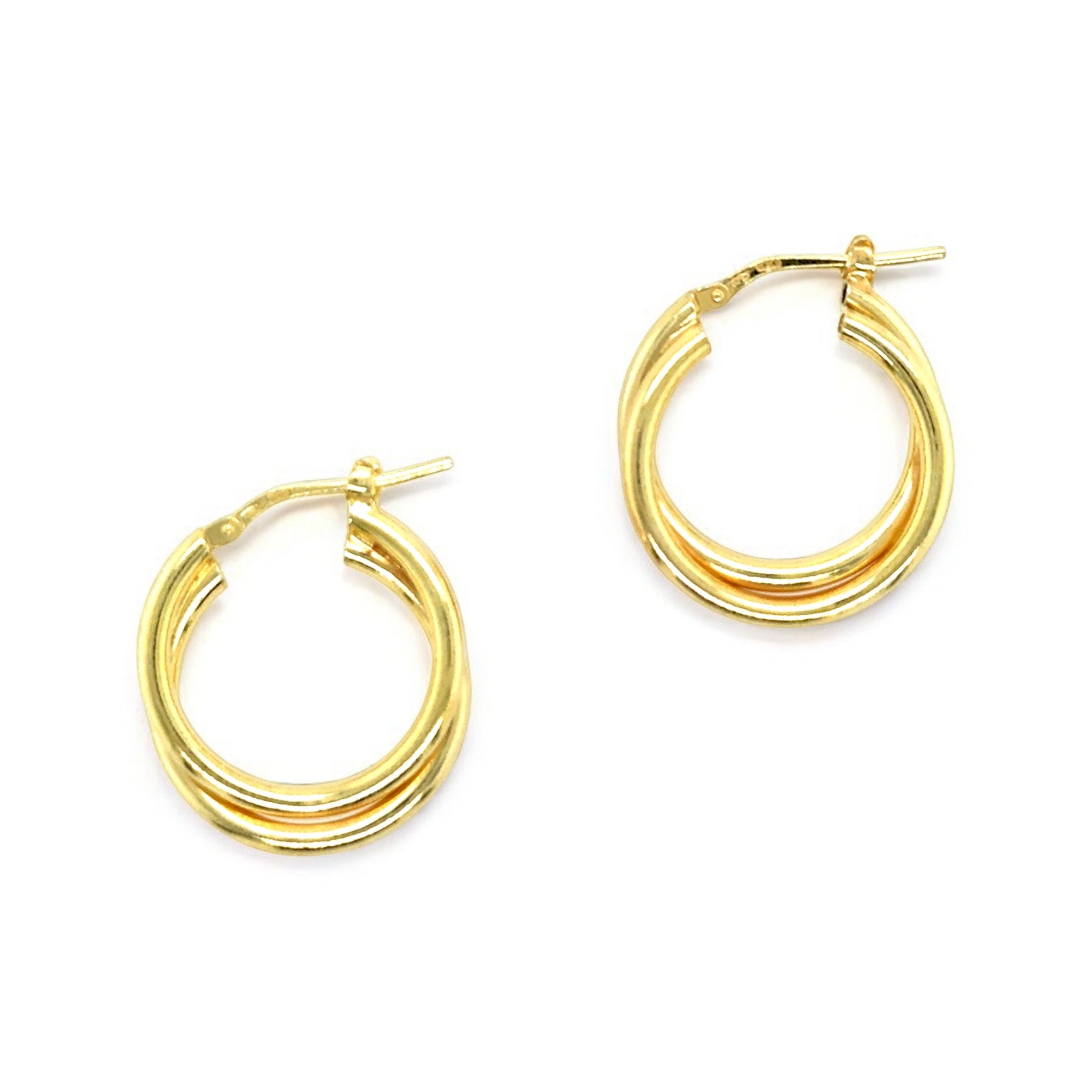 Two wire, mobius design small gold plated silver hoop earrings polish finish.