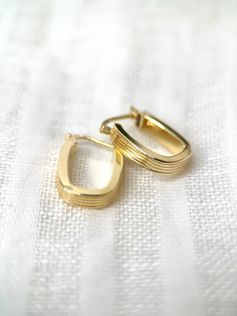 Oval design, textured hoop earrings with a gold plated finish.