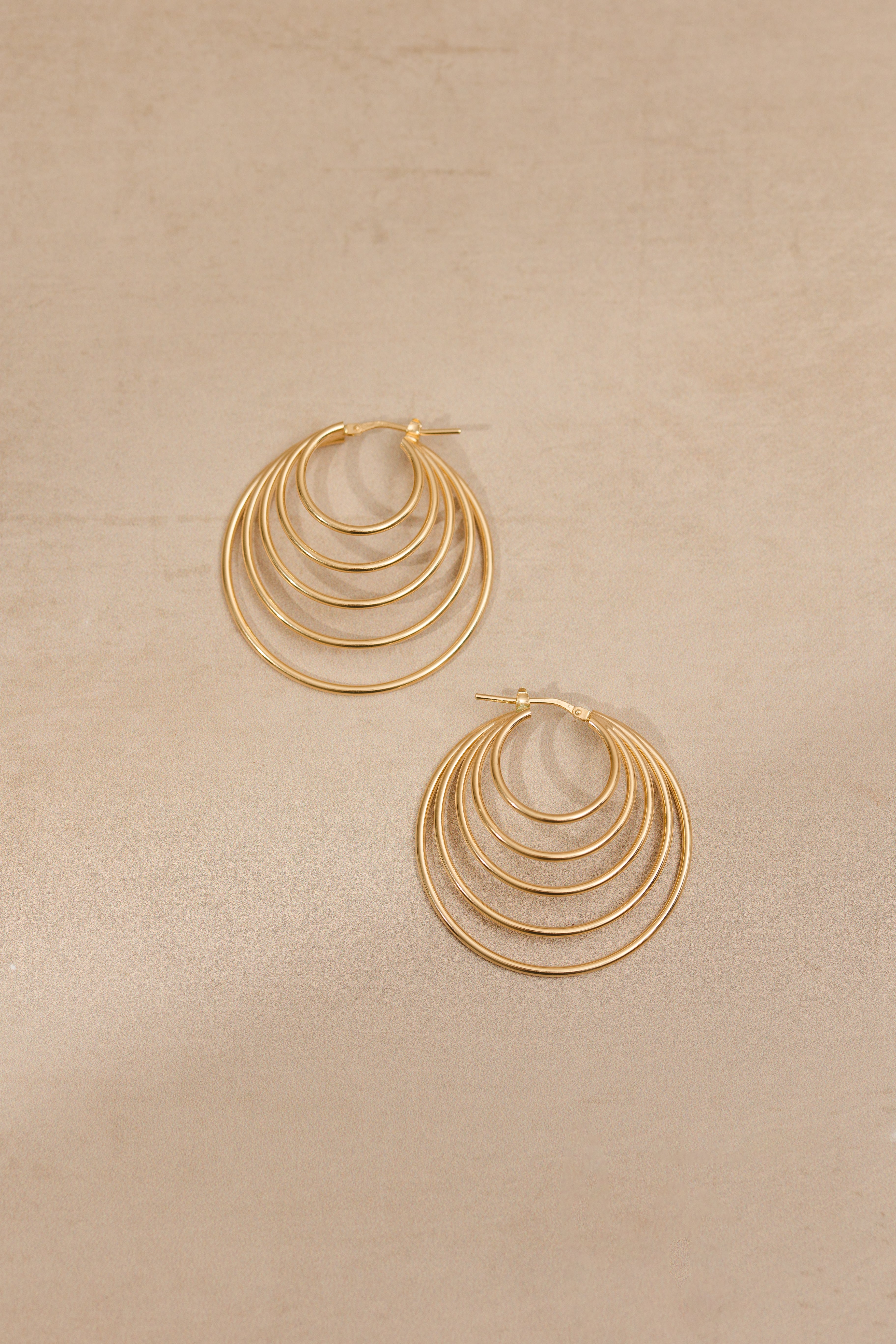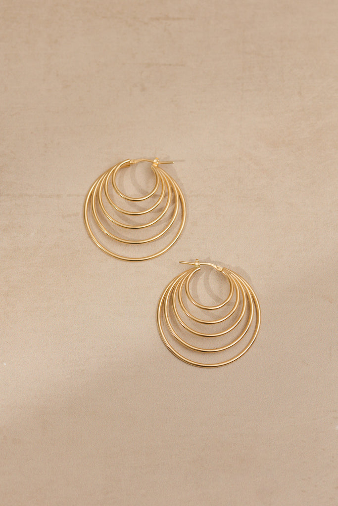 Multi-layered circle hoop earrings in gold plated silver.