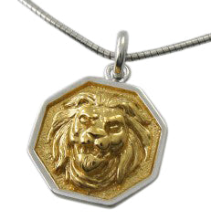 Lion head in hexagon shape gold plated silver pendant.