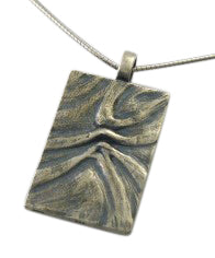 Large rectangle double sided design silver pendant with oxidised textured detail.