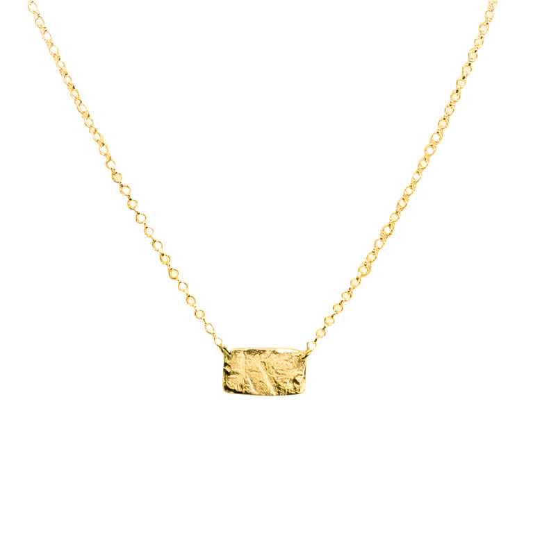 Delicate rectangle pendant gold plated silver necklace. Part of the Saphirim collection.