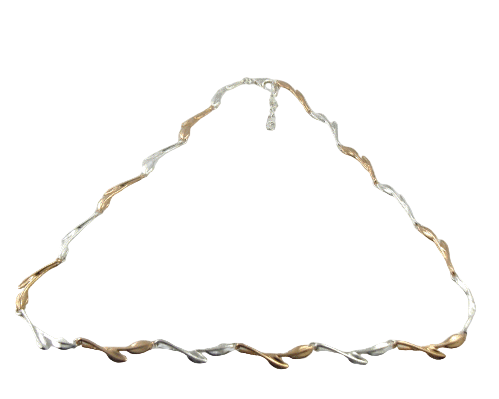 Daint two-leaf design bracelet in rose gold plated silver and plain silver.
