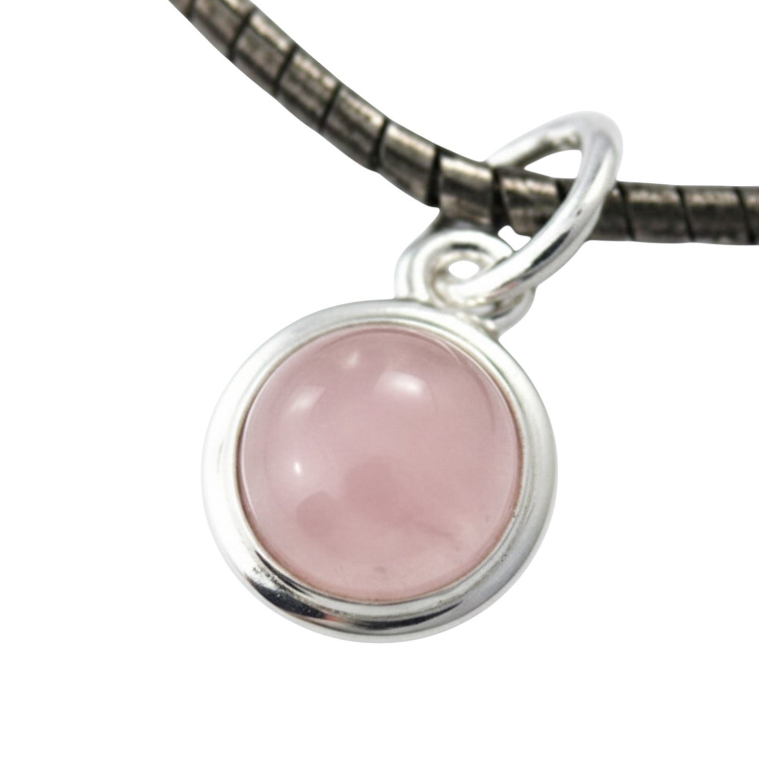 Rose quartz gemstone pendant with plain silver.