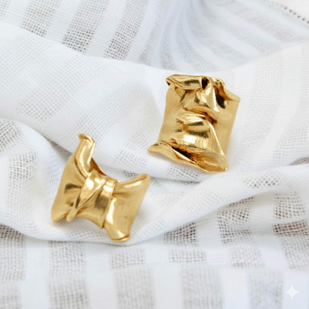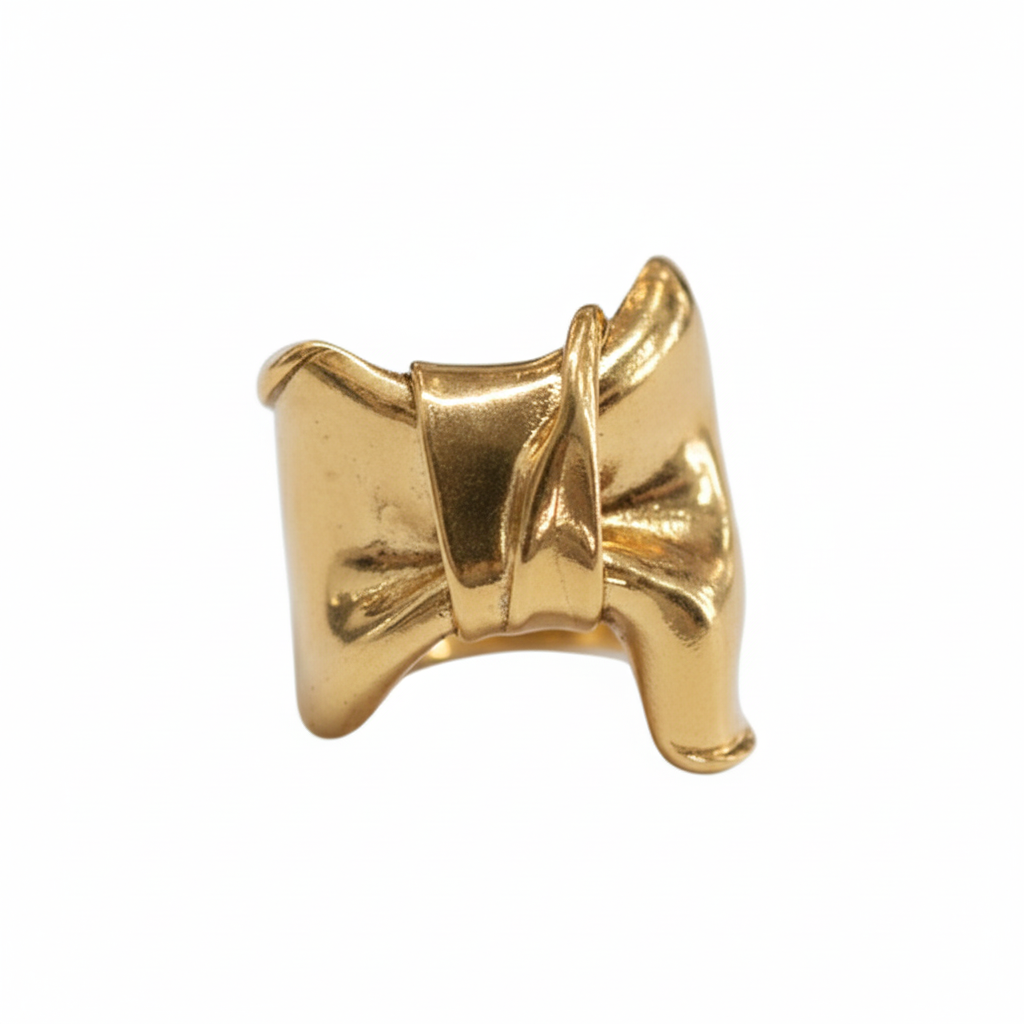 Organic statement silver ring with a bow detail and thin shank to make it wearable, finished in gold plated silver. Part of the Saphirim collection.