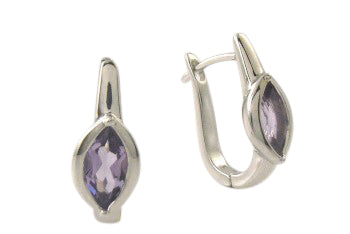 Amethyst stones marquise shape silver stud earrings latch clip back.