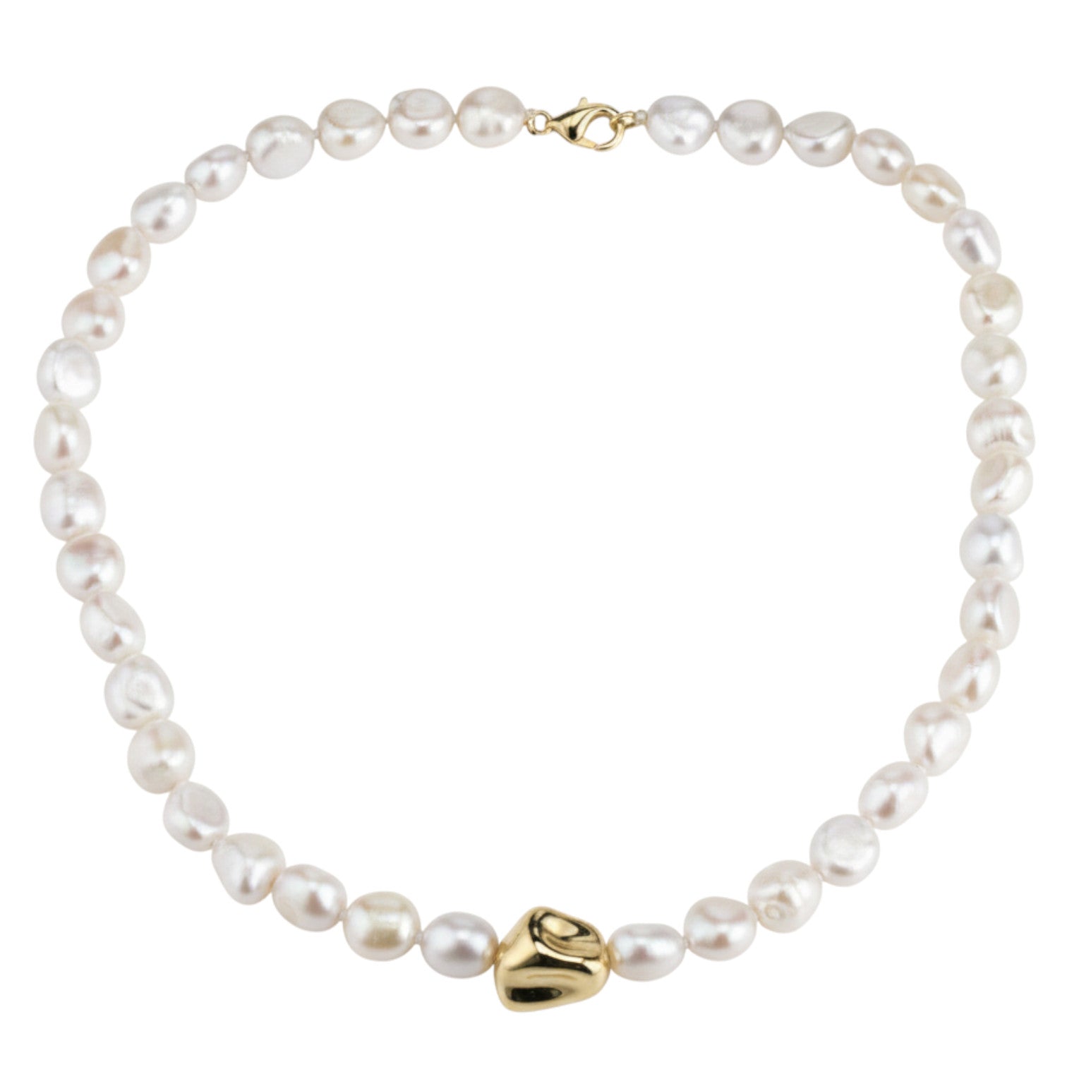 Baroque freshwater pearl necklace with nugget detail and lobster clasp in gold plated silver.