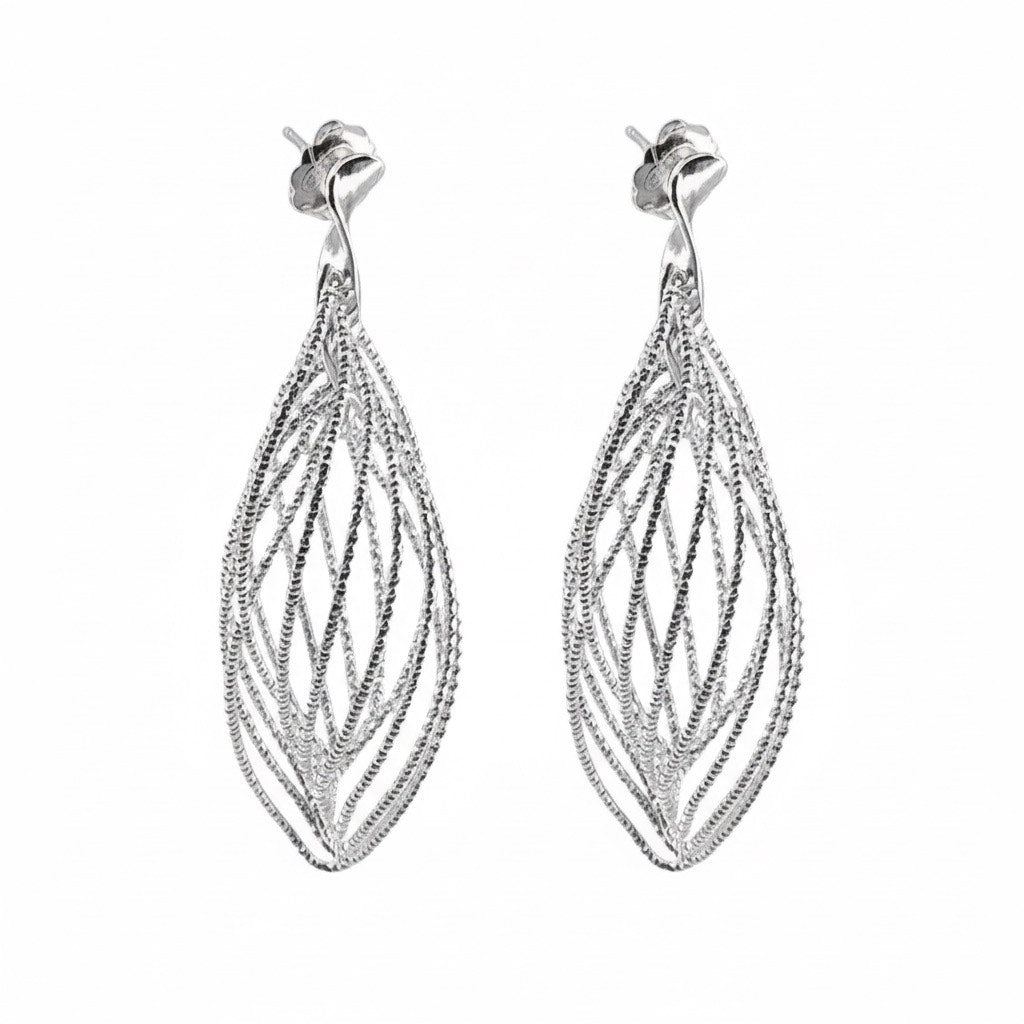Large multi dangle detail silver drop earrings.