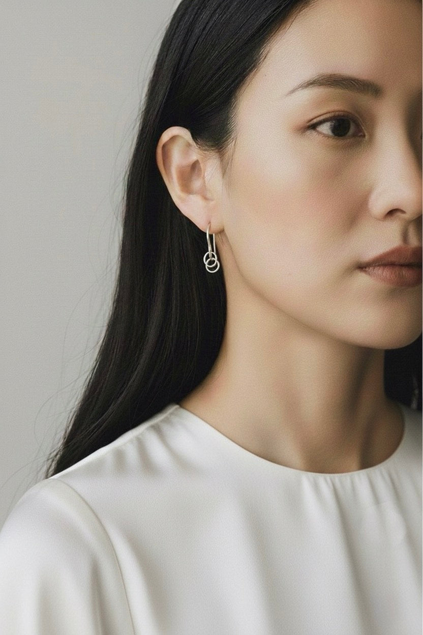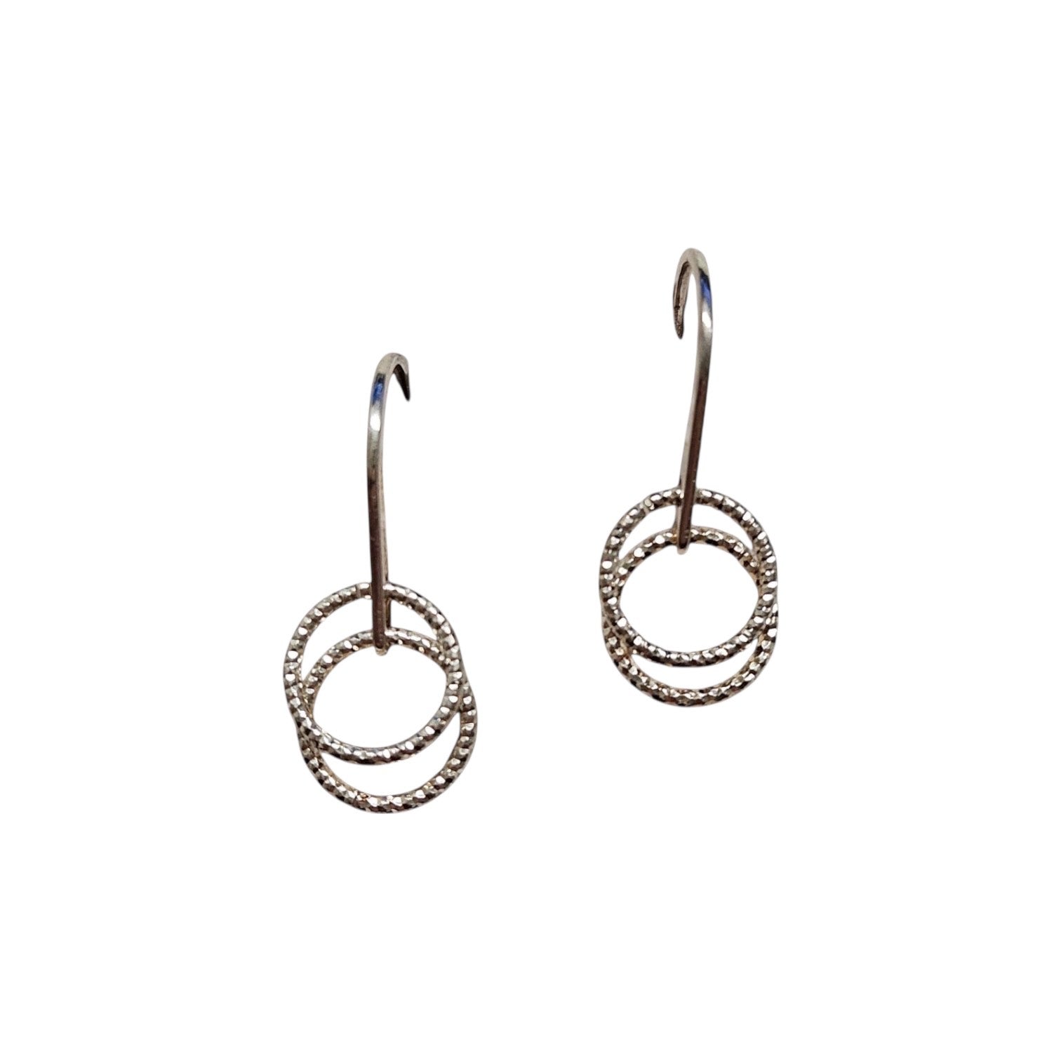 Two micro glitzy circle shape silver drop earrings.