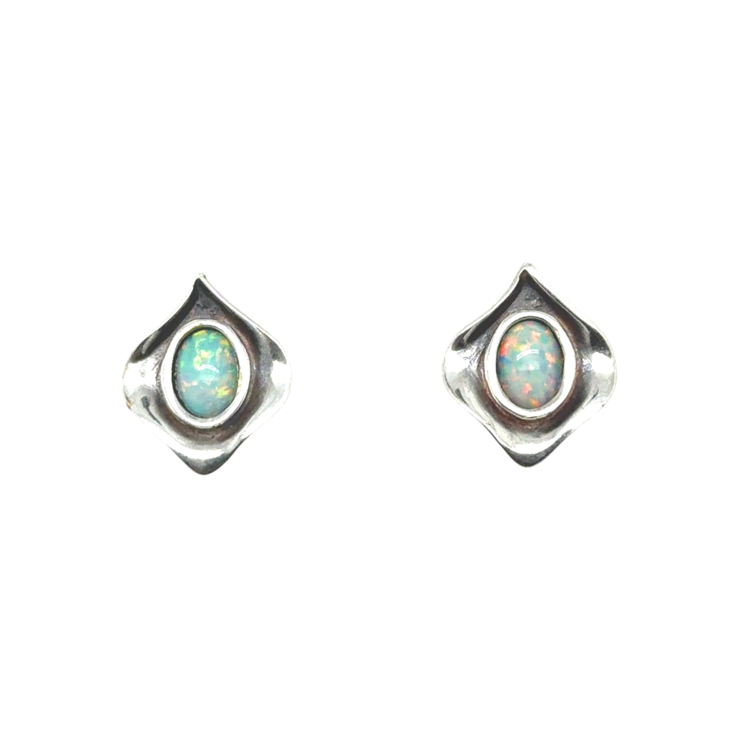 Beautiful opalite silver stud earrings with an organic silver design. It is part of the Hagit Designs collection.