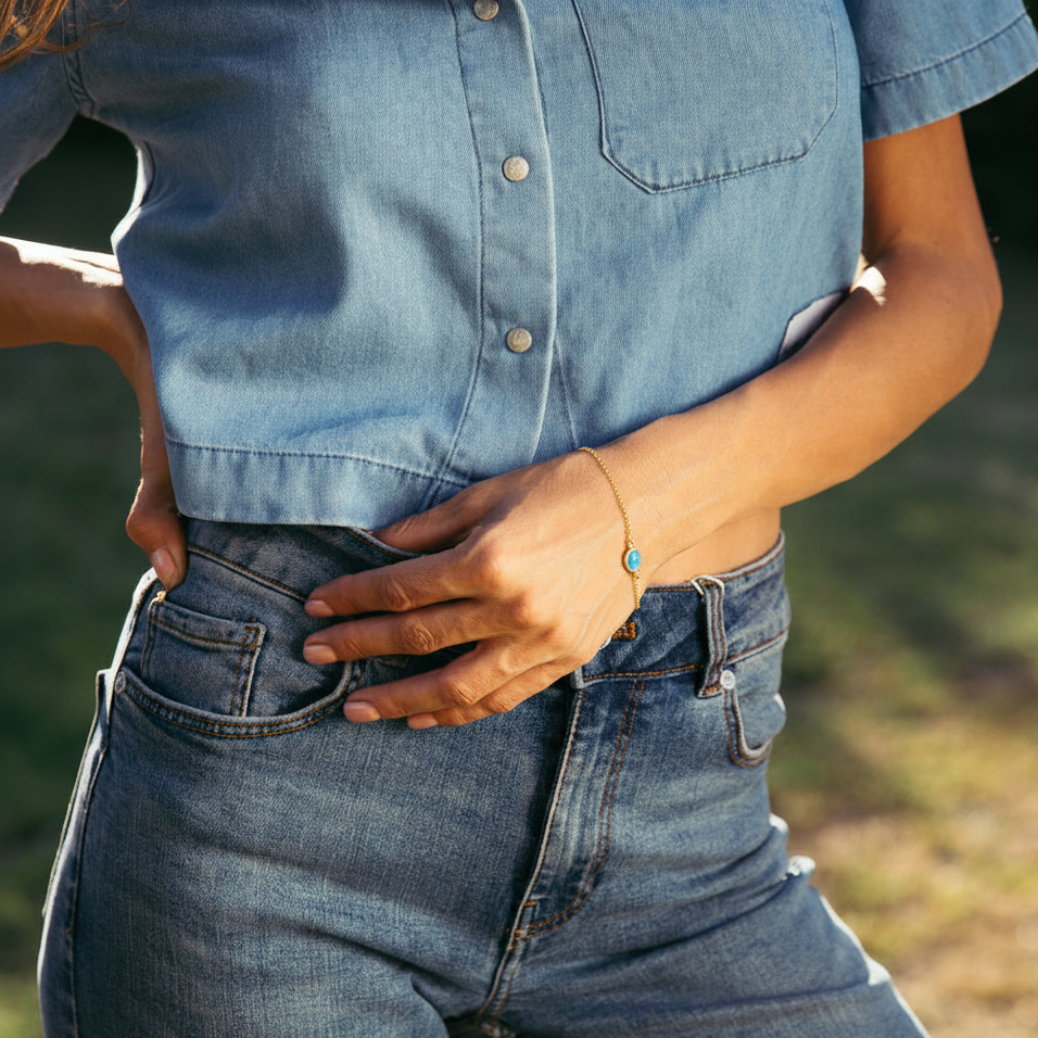 Oval opalite simple stone chain bracelet in gold plated silver. Part of the Saphirim collection.