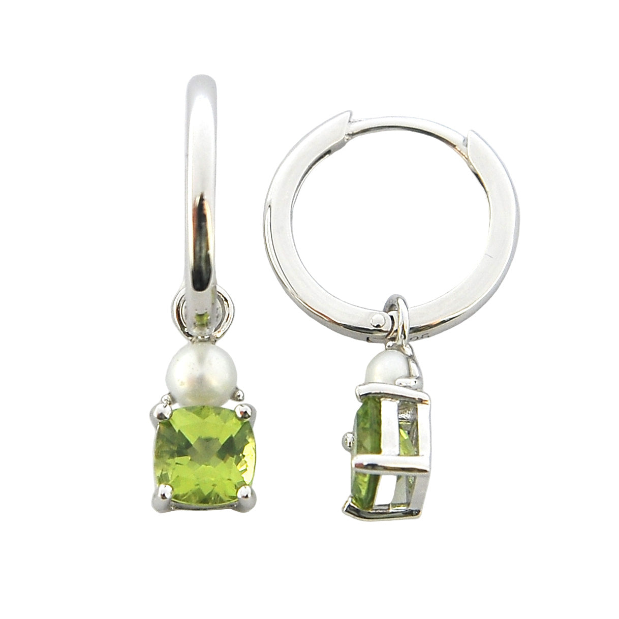 Peridot & fresh water pearl silver huggies