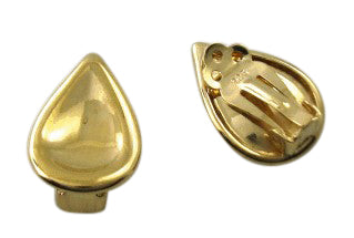 Reflective teardrop gold plated silver clip earrings with polish finish and continental fitting.