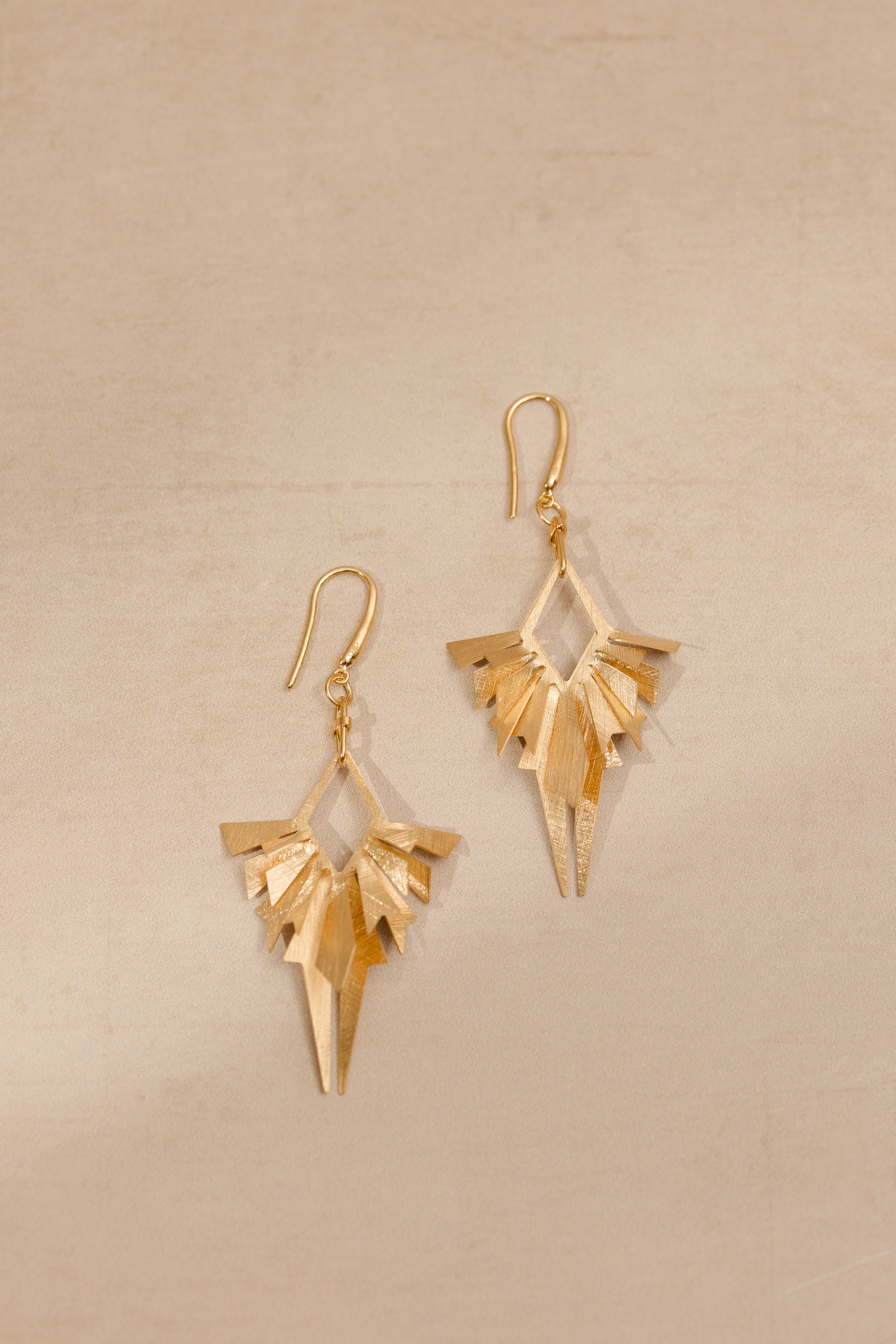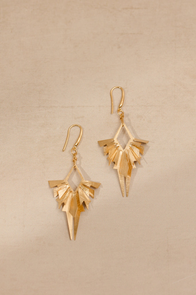 Statement geometric design drops gold plated earrings with double layer detail.