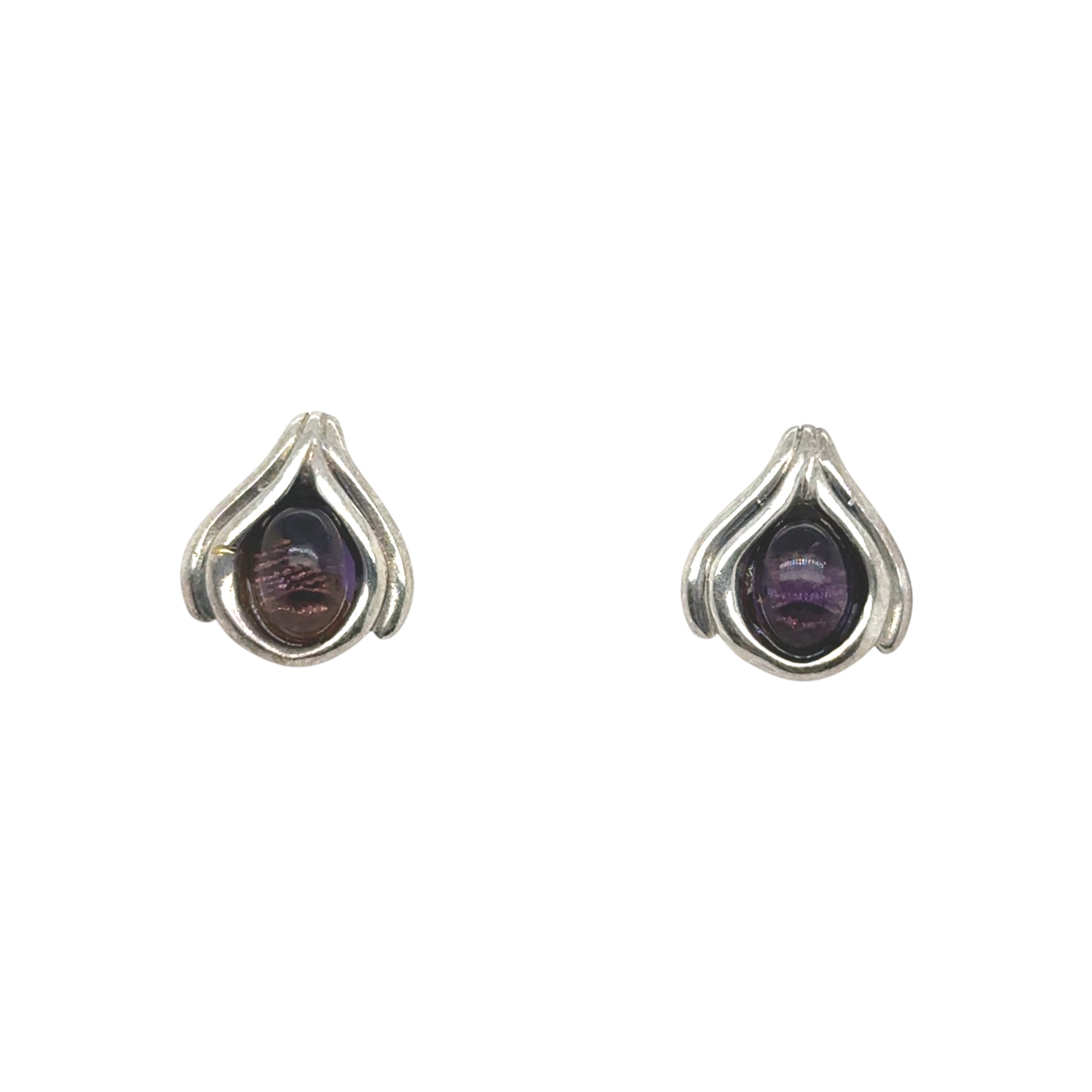 Amethyst silver stud earrings with an organic teardrop design. It is part of the Hagit Designs collection.