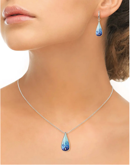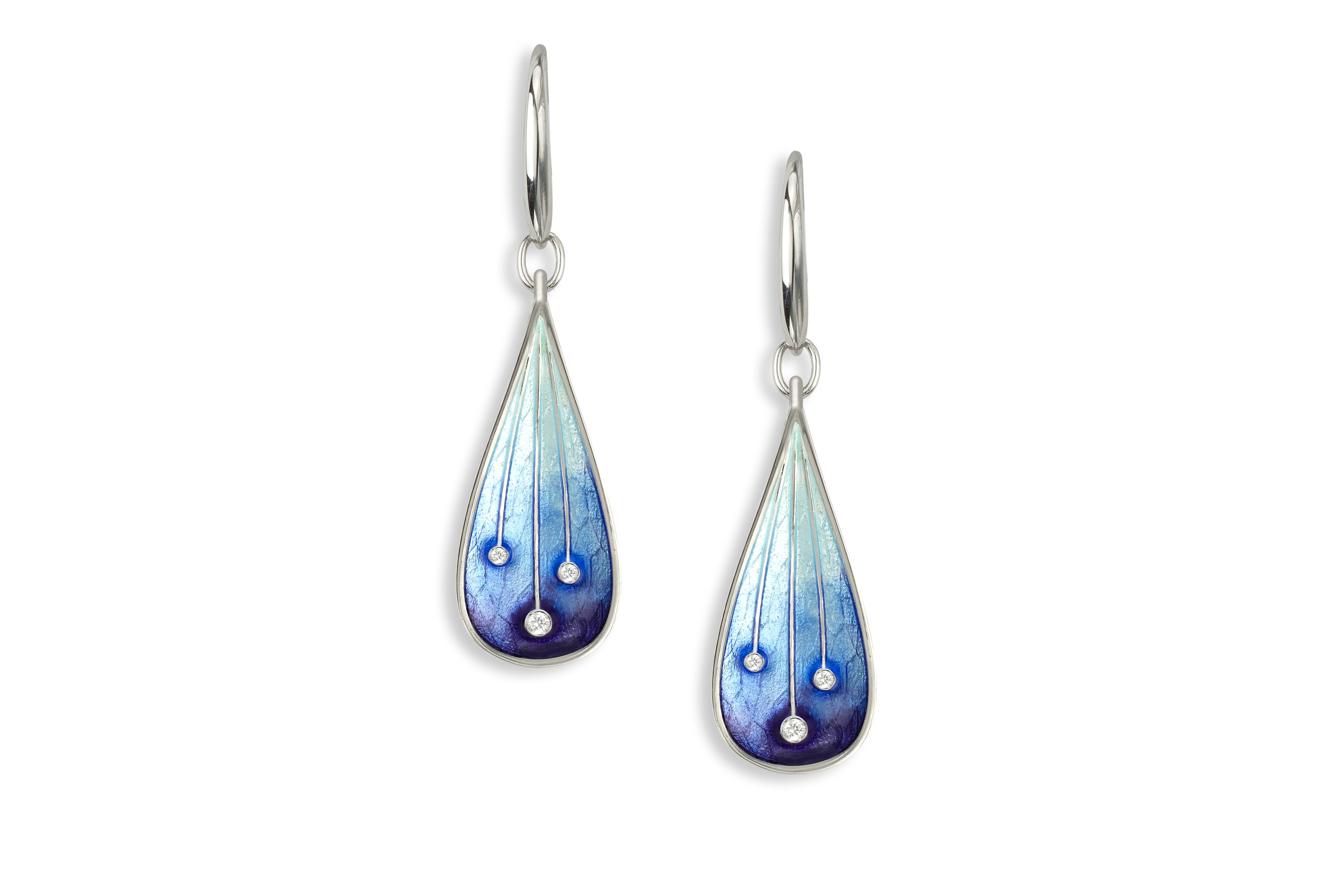 Blue sky with stars drop earrings with navy and blue enamel and white sapphires.