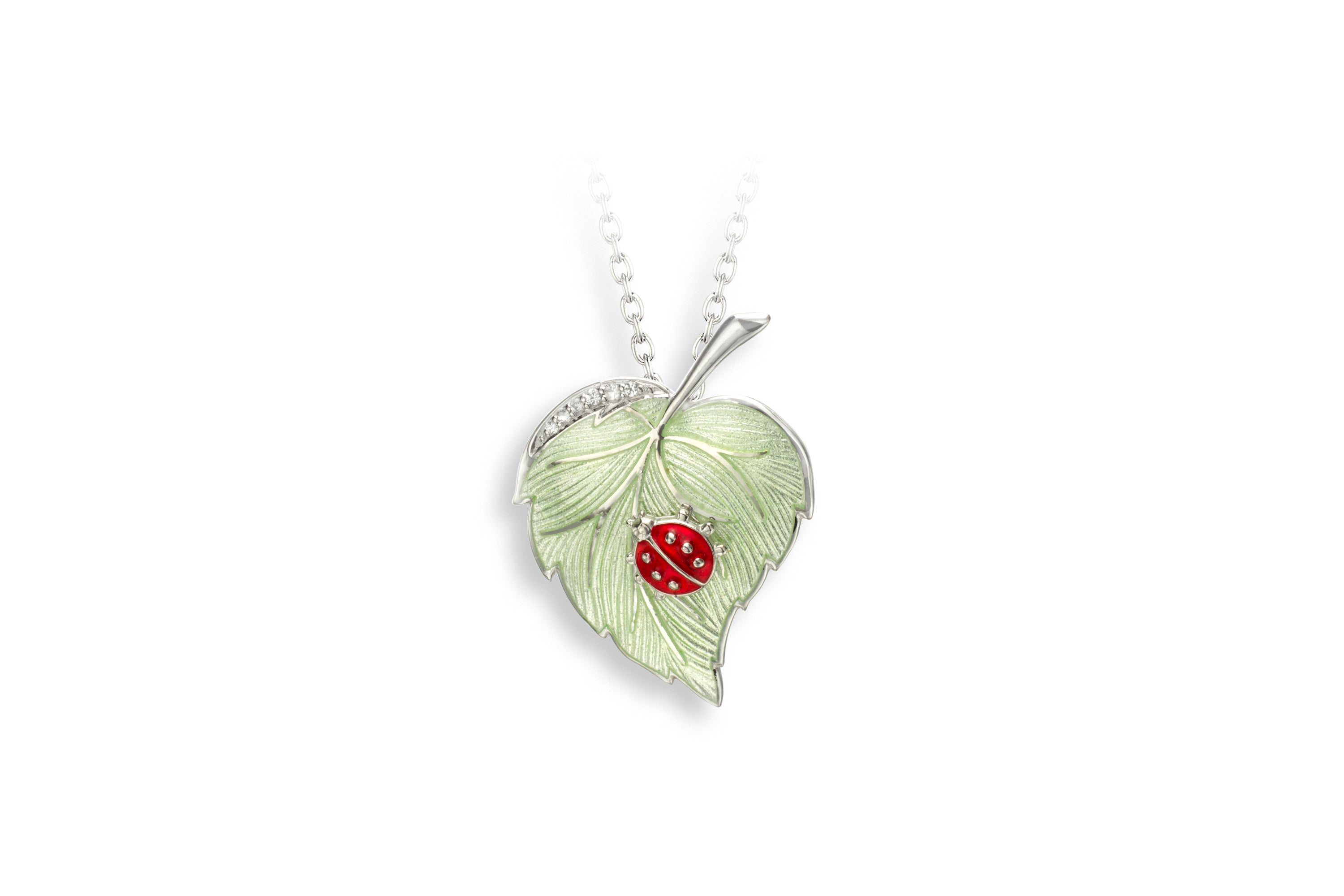 Beautiful Ladybird necklace with red enamel and white sapphires.