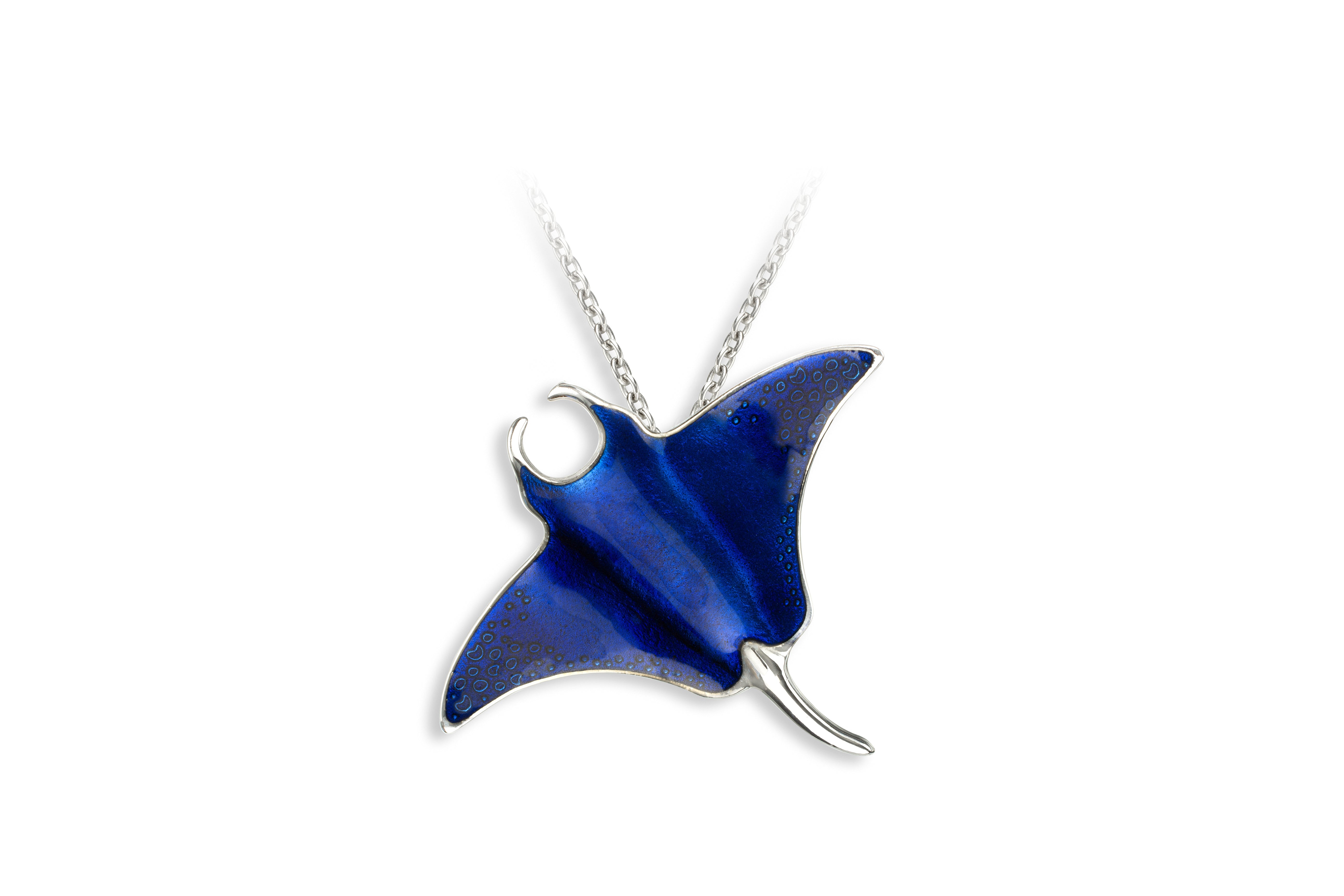Beautiful blue Manta ray pendant necklace with Navy blue enamel.