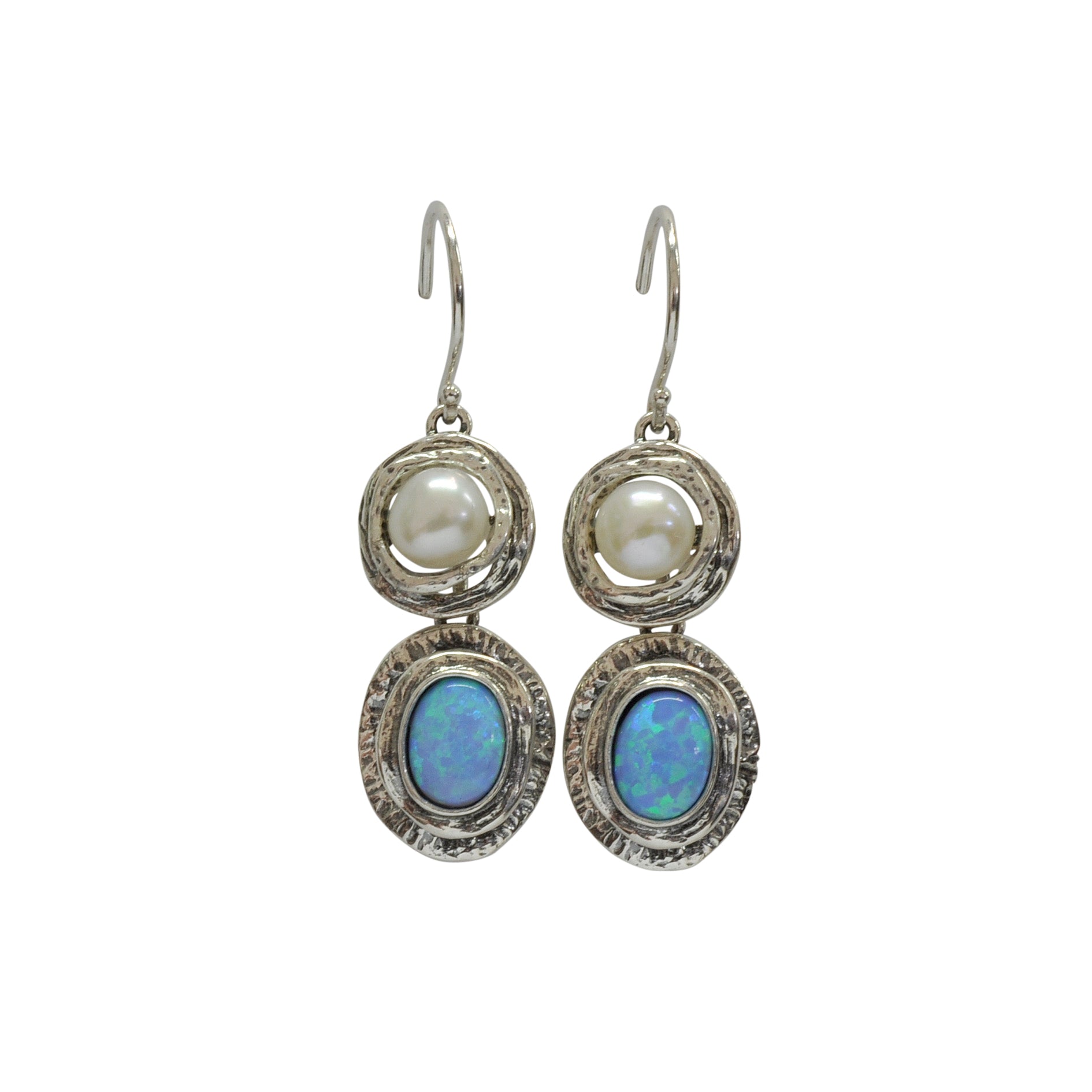 Statement, Opalite and pearl organic style drop earrings. Part of the Saphirim collection.
