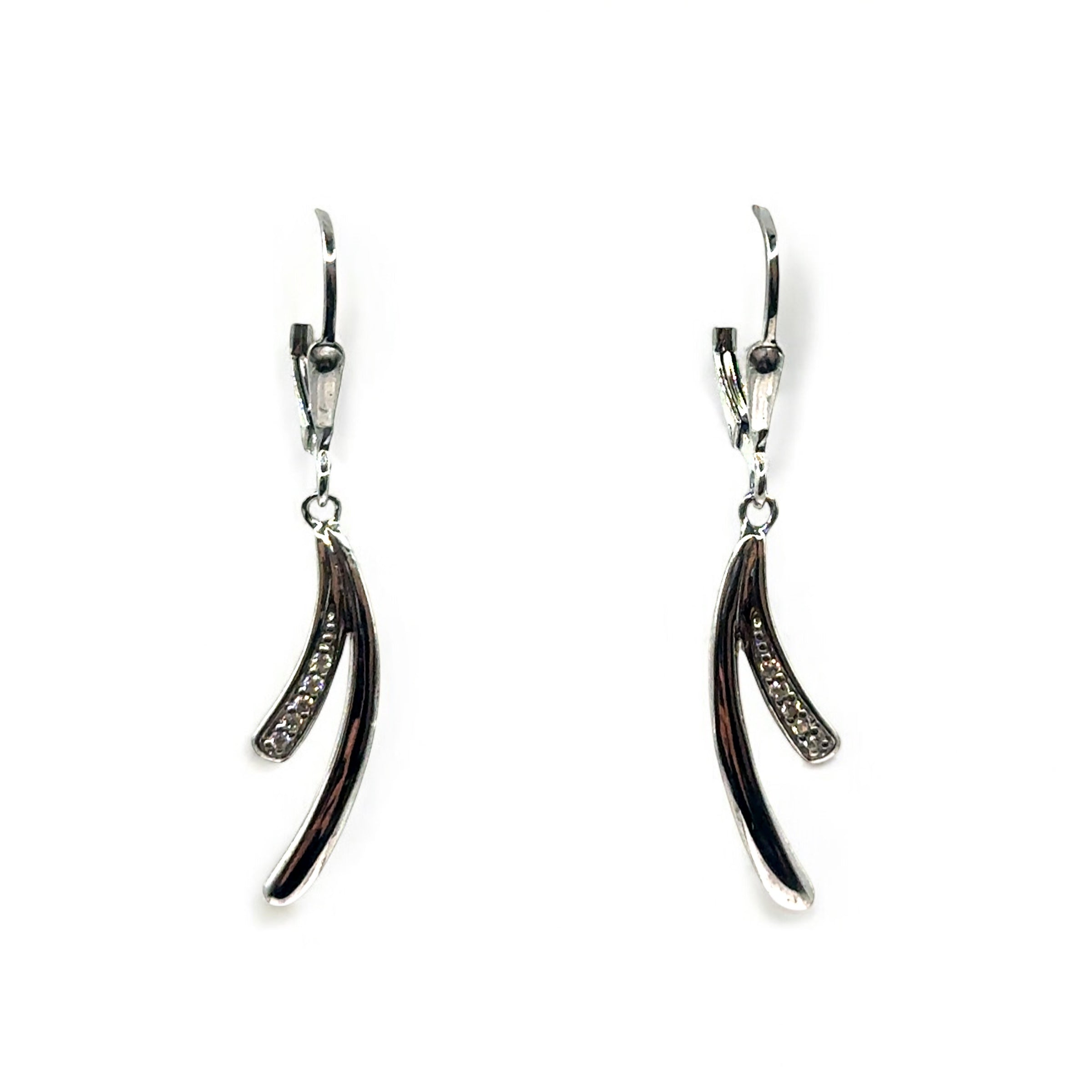 CZ strand design silver drop earrings with polish finish.