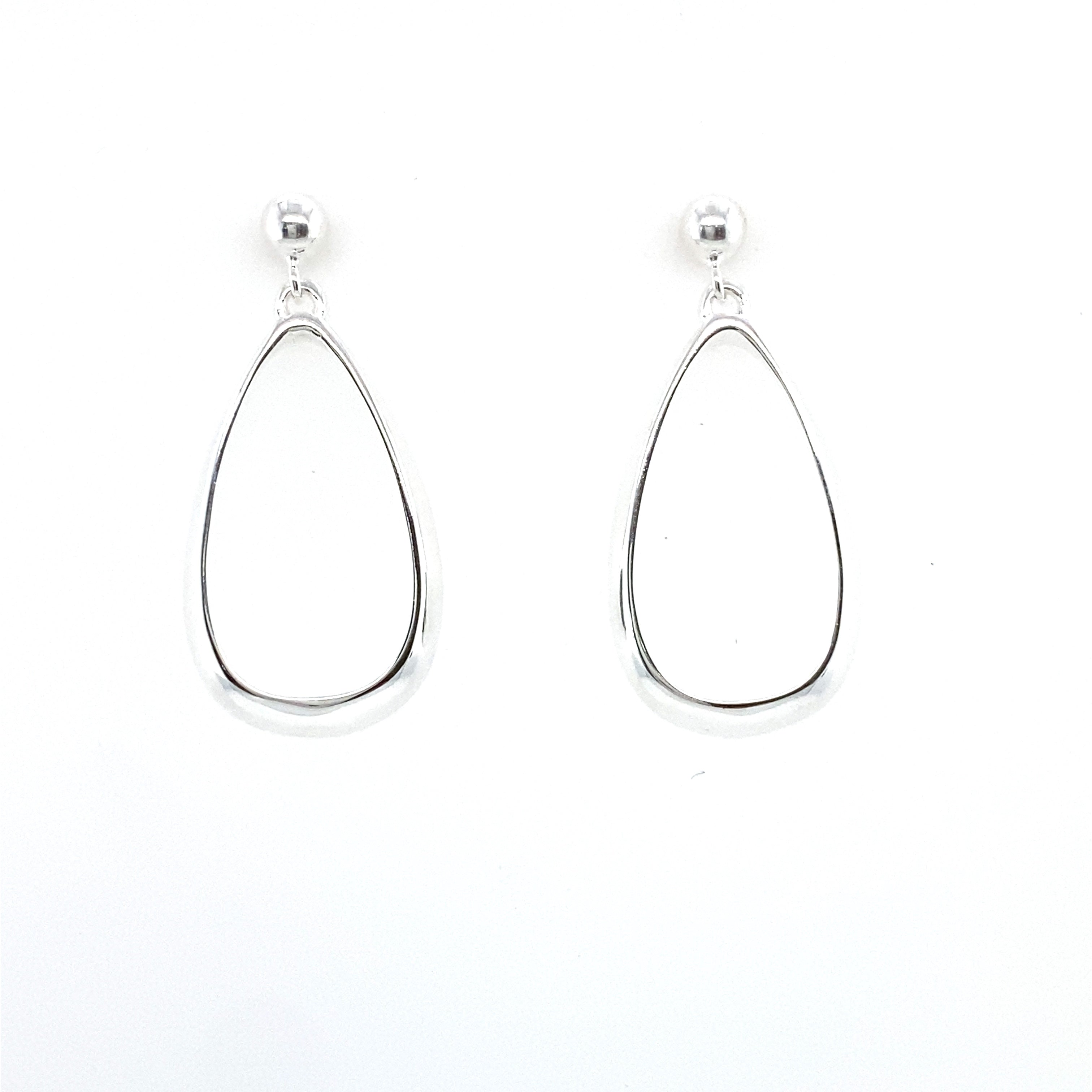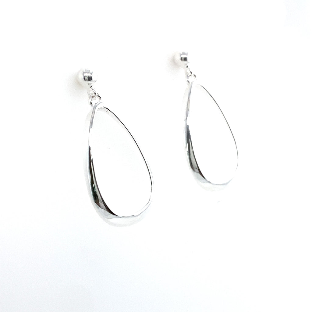 Beautiful, wide teardrop design open drop earrings with a stud top.