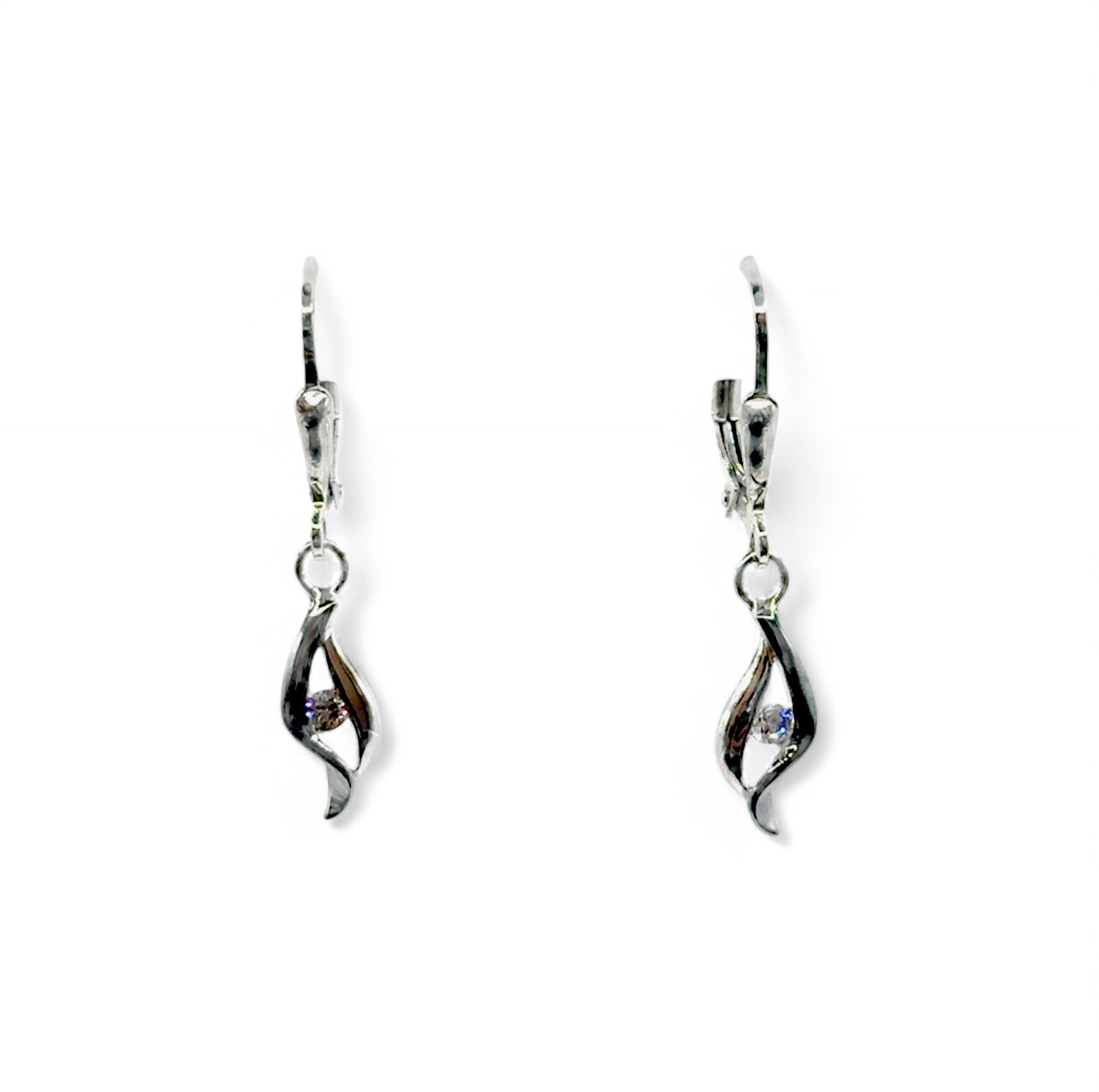 Swirl CZ silver drop earrings with polish finish and rhodium plated detail.