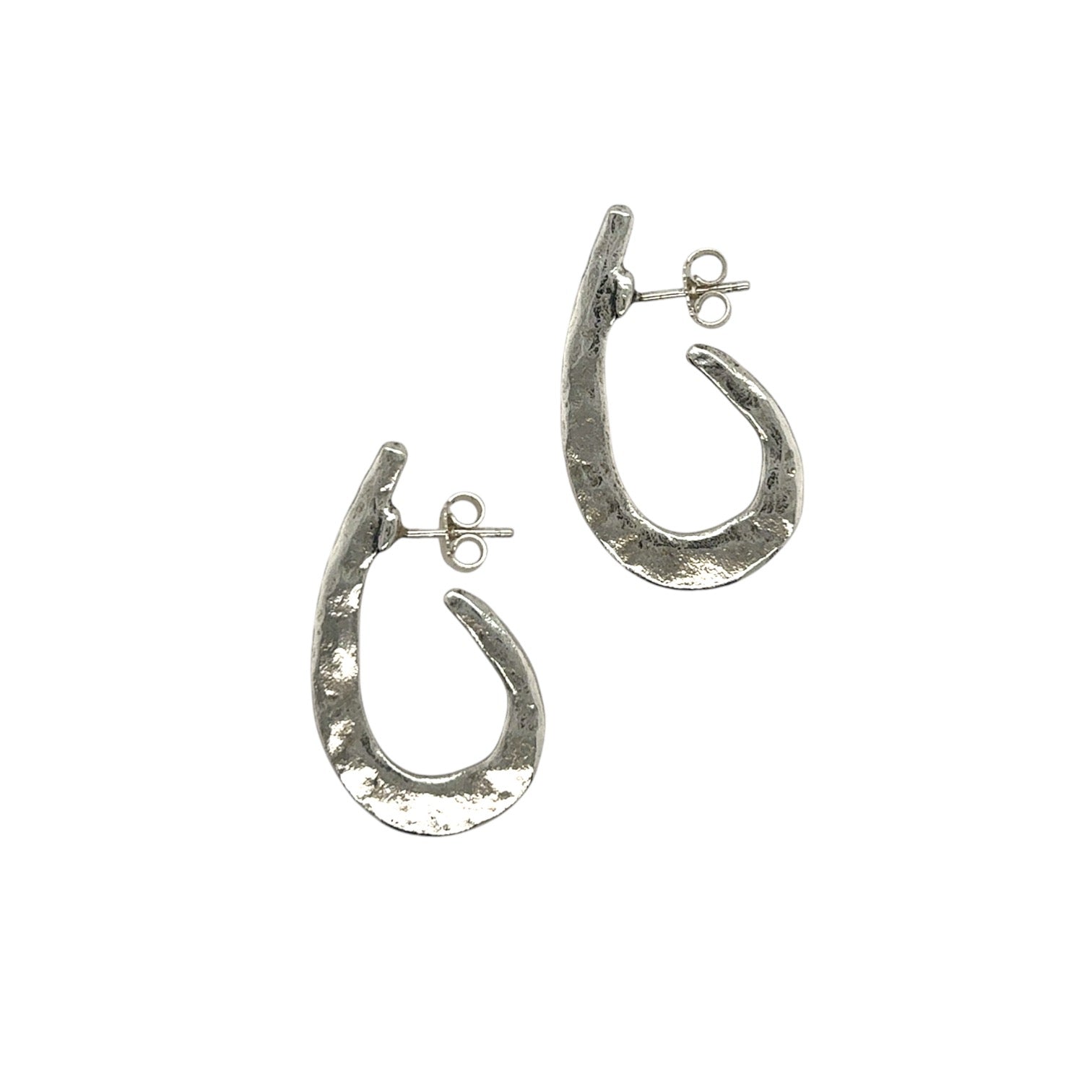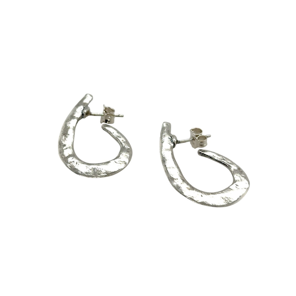 Slim hammered half hoops silver earrings. Part of the Saphirim collection.