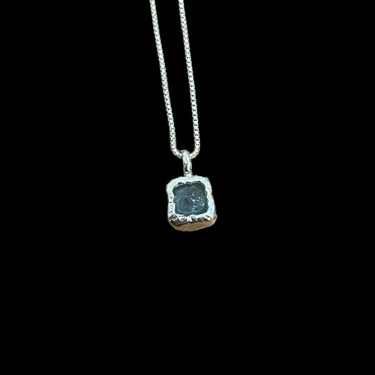 Aquamarine pendant necklace with silver setting on a silver chain. Part of the Saphirim collection.