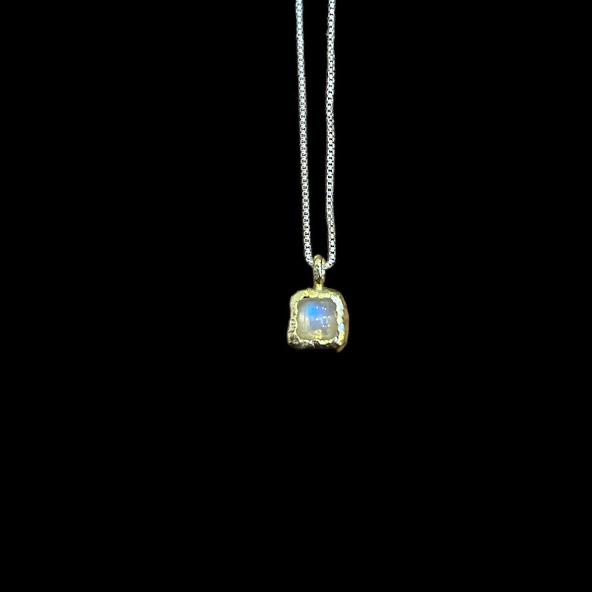 Moonstone pendant necklace with gold plated setting on an silver chain. Part of the Saphirim collection.