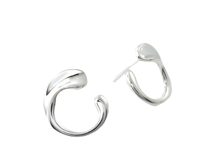 Graduated curved silver stud earrings with flattened detail and polish finish.