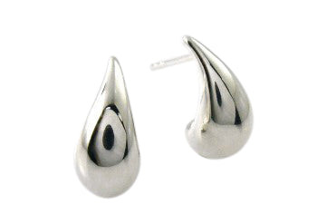 Teardrop silver drop earring with a polish finish.