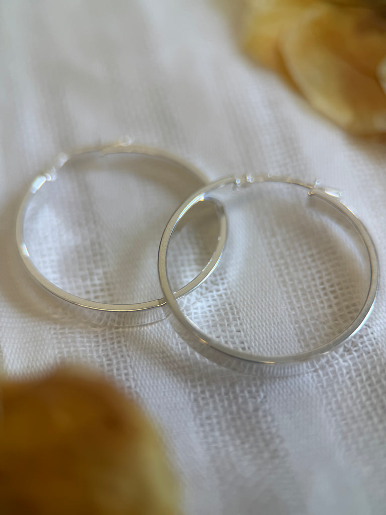 Subtle tiny flat square wired hoop earrings in plain silver.